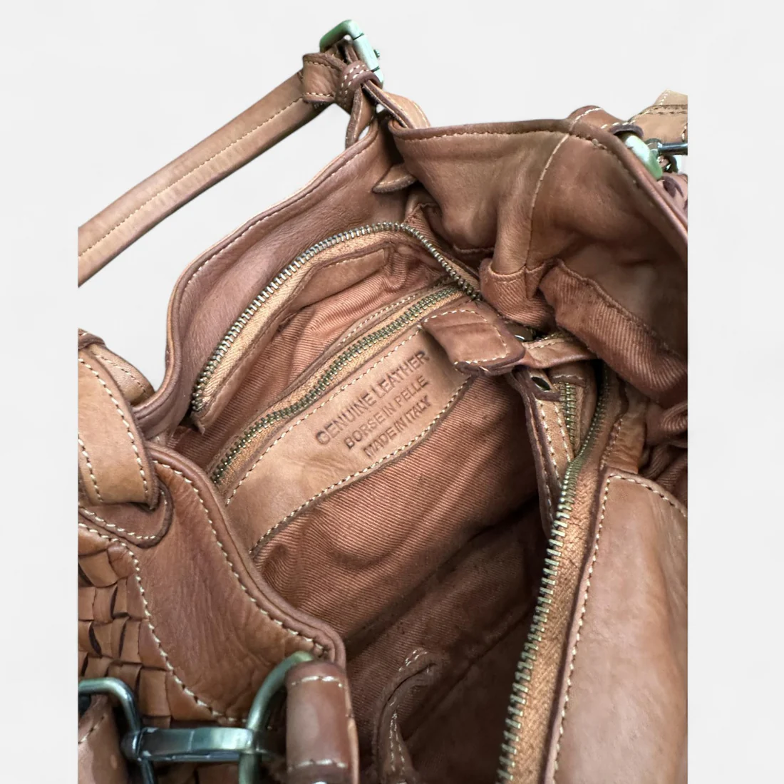 Diseño: trenzado artesanal en ambas caras