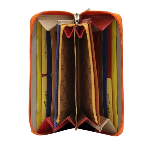 • Interior: Multicolor con múltiples ranuras para tarjetas y compartimentos para billetes y monedas.